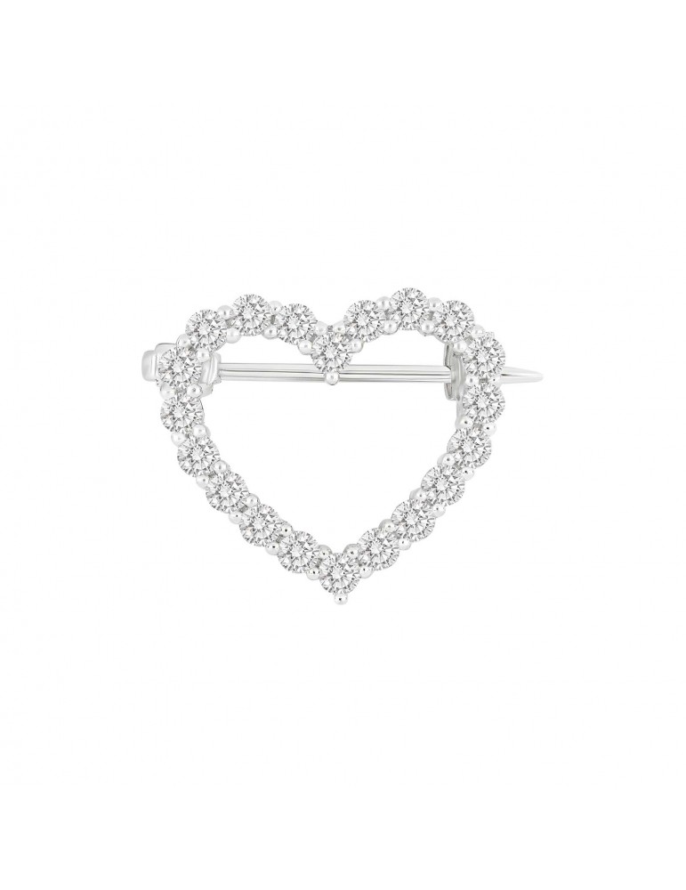 Fin sølv rhodineret hjerte broche med zirkonia.