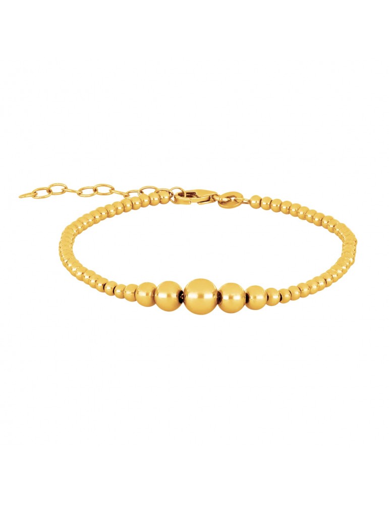 Stilrent forgyldt sølvarmbånd af kugler i forløb fra 2,5mm til 6mm. Armbånd har forlængerkæde så det er regulerbart i størrelse.