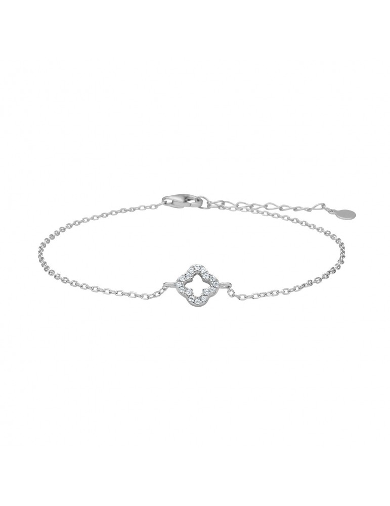 Super sødt rhodineret sølv armbånd med firkløver og zirkonia.