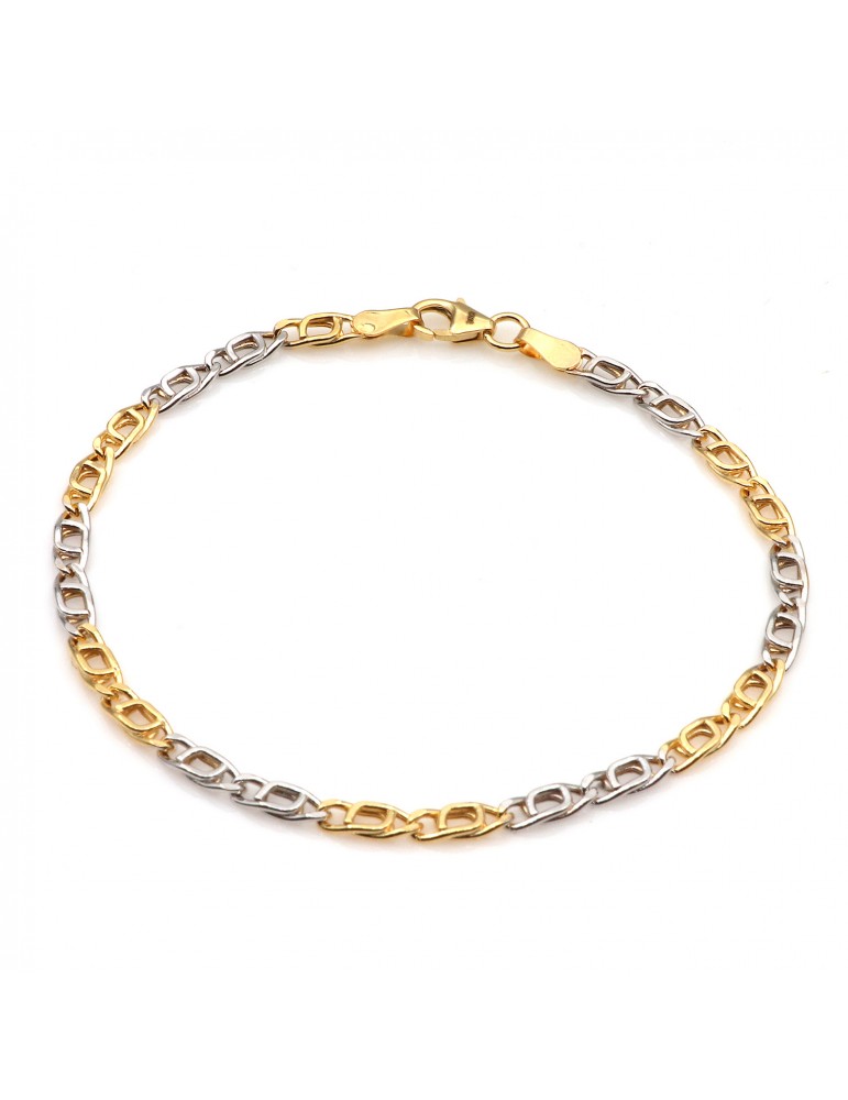 14kt guldarmbånd - med skiftevis rød og hvidguldsled. Armbåndet måler 19 cm og er 3,3 mm bredt.