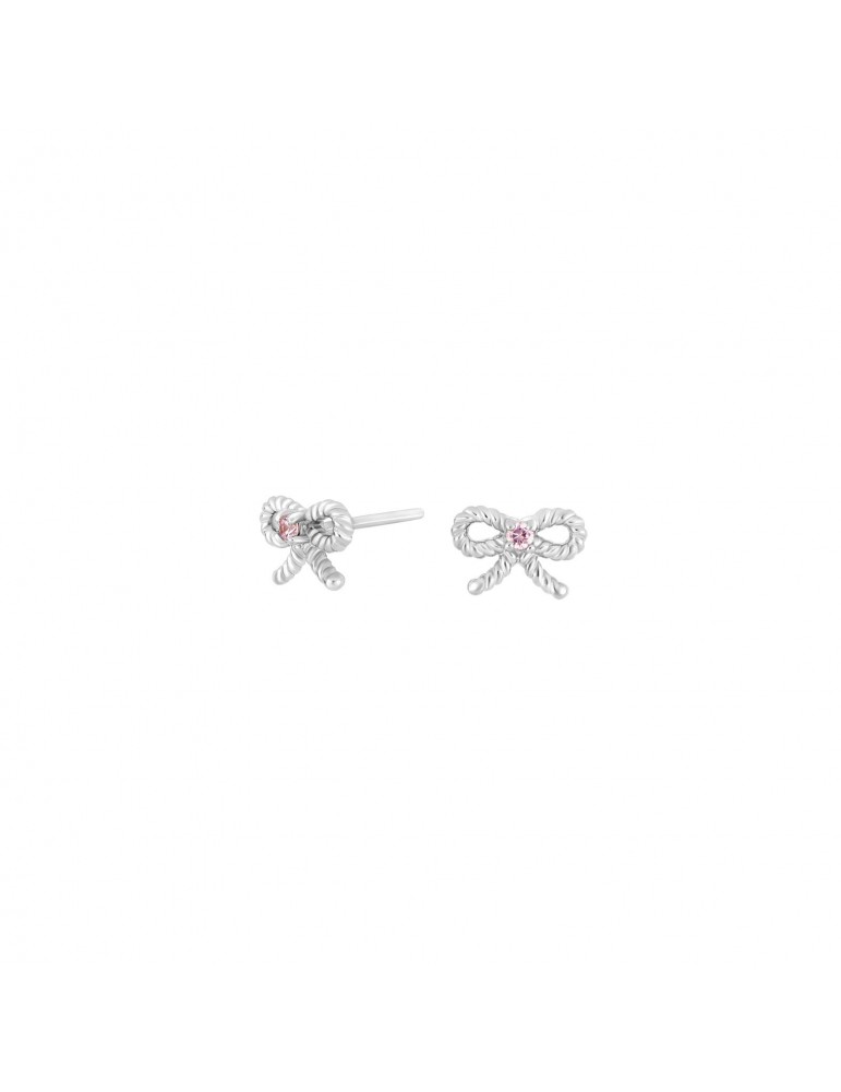 Fine små sølv sløjfe ørestikker m. lyserøde sten på.