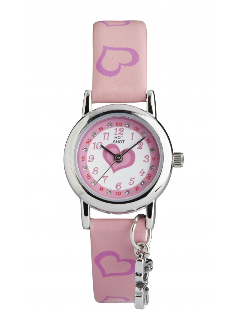 Fint Hot Shot Børneur lyserød m/hjerter
