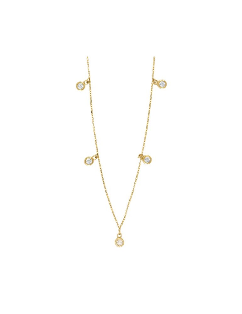 8kt guld halskæde med 5 små rørfatninger med zirkonia i.