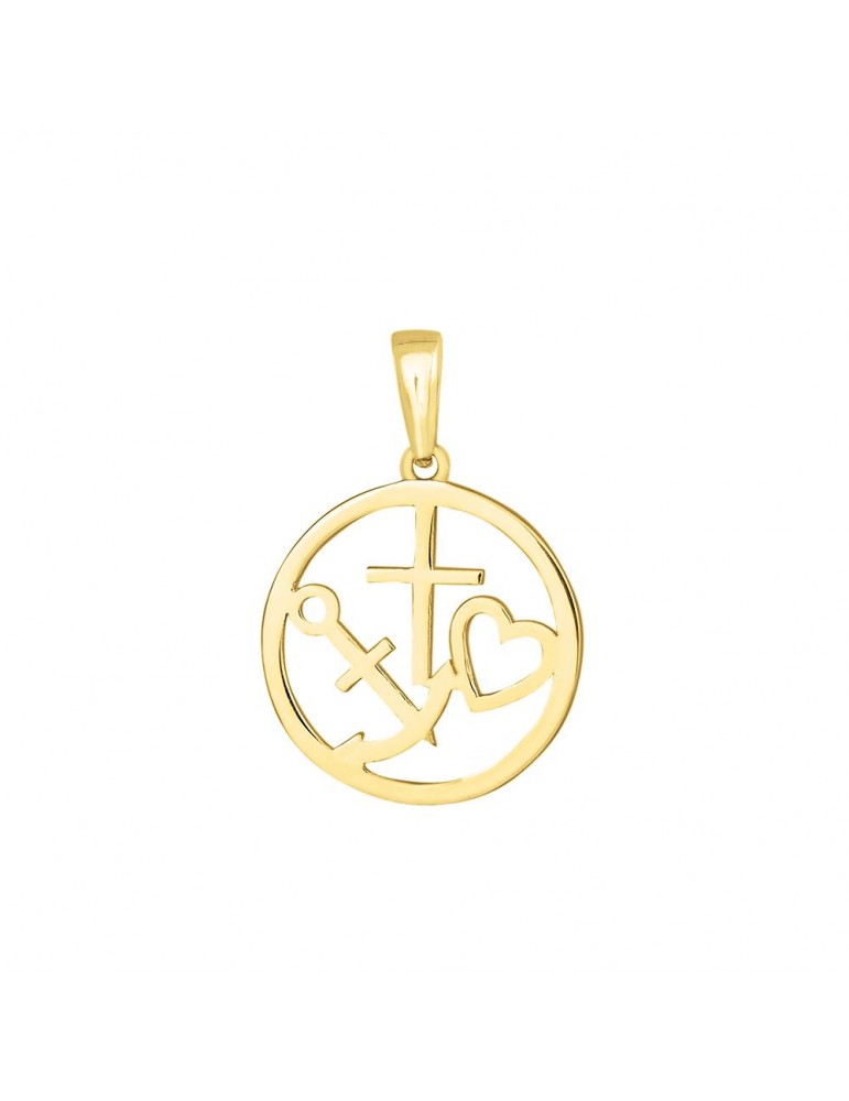 8kt guld Siersbøl vedhæng - rund cirkel med tro håb og kærligheds symboler