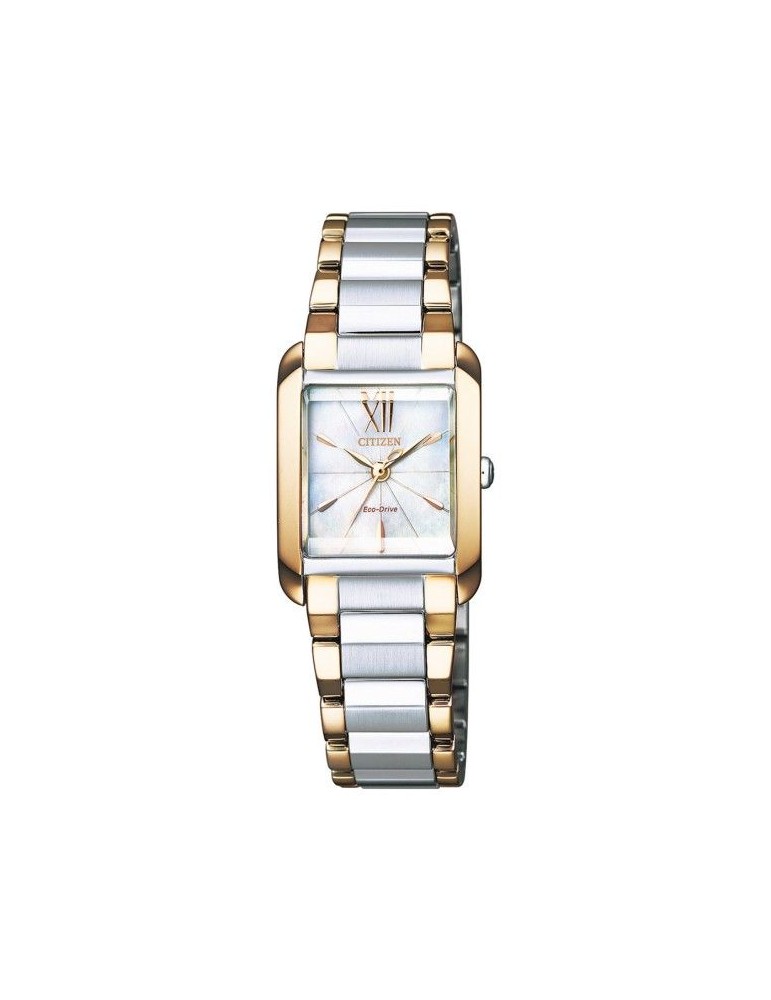 Citizen dameur med lænke. Uret er i bicolour med perlemorsskive. Uret er Eco-Drive, så værket er drevet af lysets stråler.