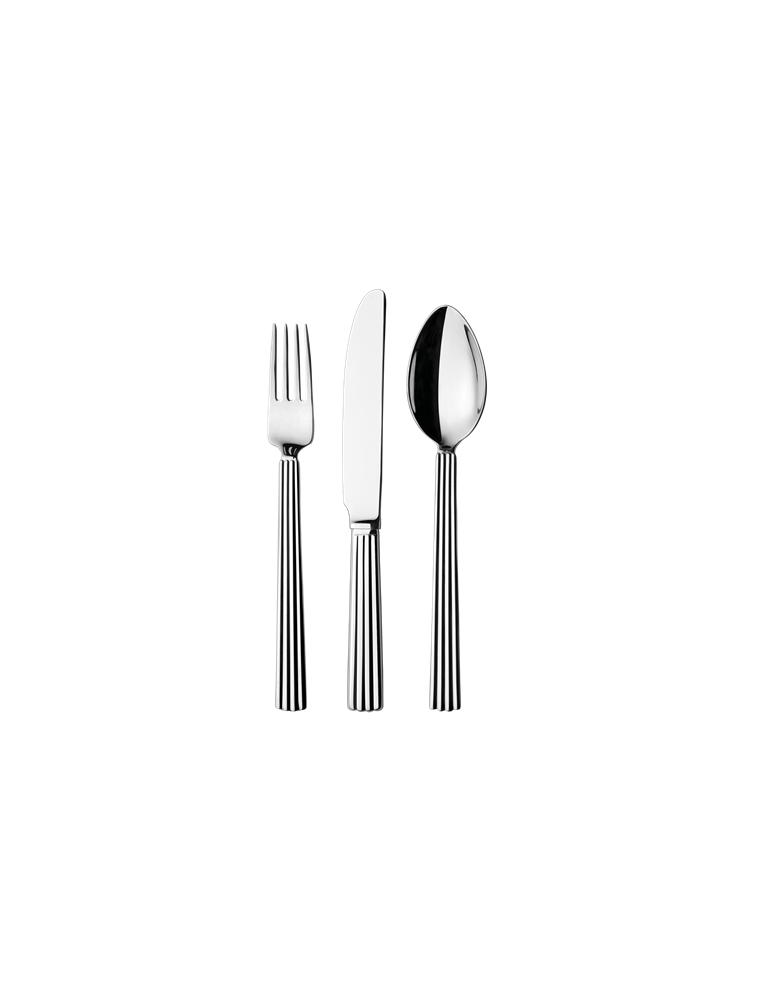 Klassisk børnebestik fra Georg Jensen, bestående af gaffel, kniv og ske i stål.