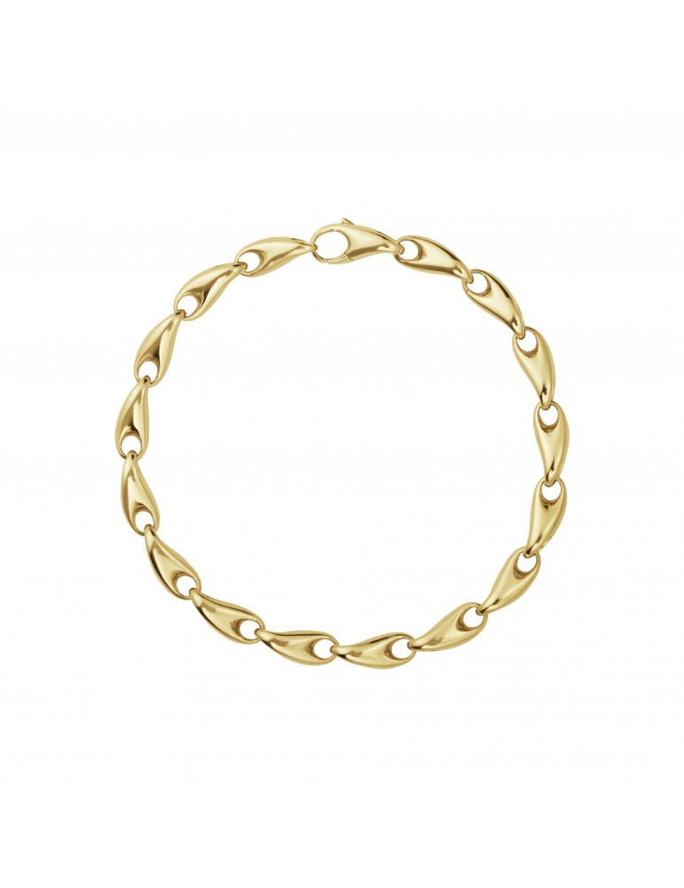 En serie af organisk formede led i 18 karat guld danner tilsammen denne moderne udgave af et traditionelt kædearmbånd. Armbåndet, der er designet af Jacqueline Rabun og fremstillet i 18 karat guld, kombinerer et dristigt look med Georg Jensens skulpturelle designsprog. Armbåndet lukkes med en integreret lås.