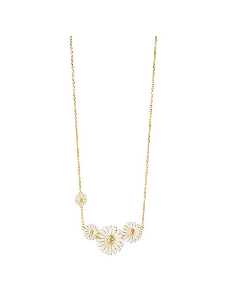 Smuk Daisy halskæde med fire margueritter i forgyldt sølv.