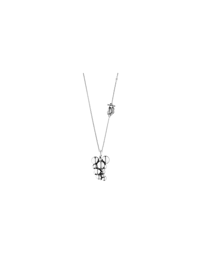 Stort sølvvedhæng formet som drueklase på 60 cm ærtekæde med lille bladlås.