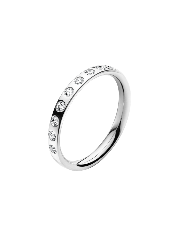 Enkel, glat ring i 18 karat hvidguld med 9 brillanter, fra Georg Jensens Magic-kollektion.