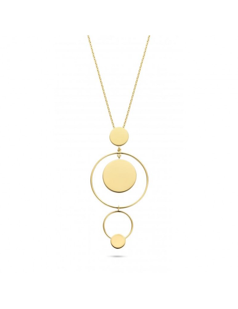 Sølv forgyldt halskæde med cirkler i forskellige størrelser. Kæden måler 70cm