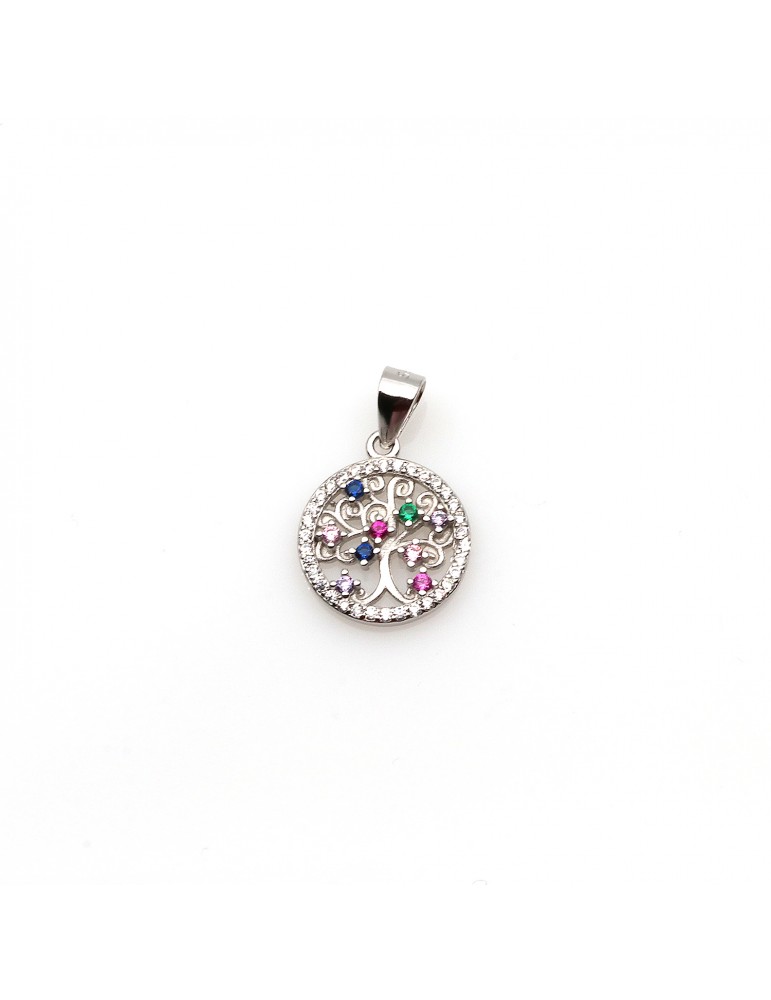 Rigtig sødt sølv vedhæng - livets træ med farvede zirkonia.