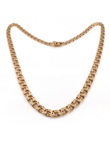 14kt guld collier - klassisk Bismark halskæde i forløb med kasselås og 2 sikkerhedslåse af 8-taller. Kæden måler 45cm og går fra 4,5 mm til 7,3 mm i forløbet.