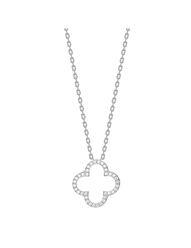 Sølv rhodineret halskæde med vedhæng formet som en firkløver og pyntet med zirkonia.