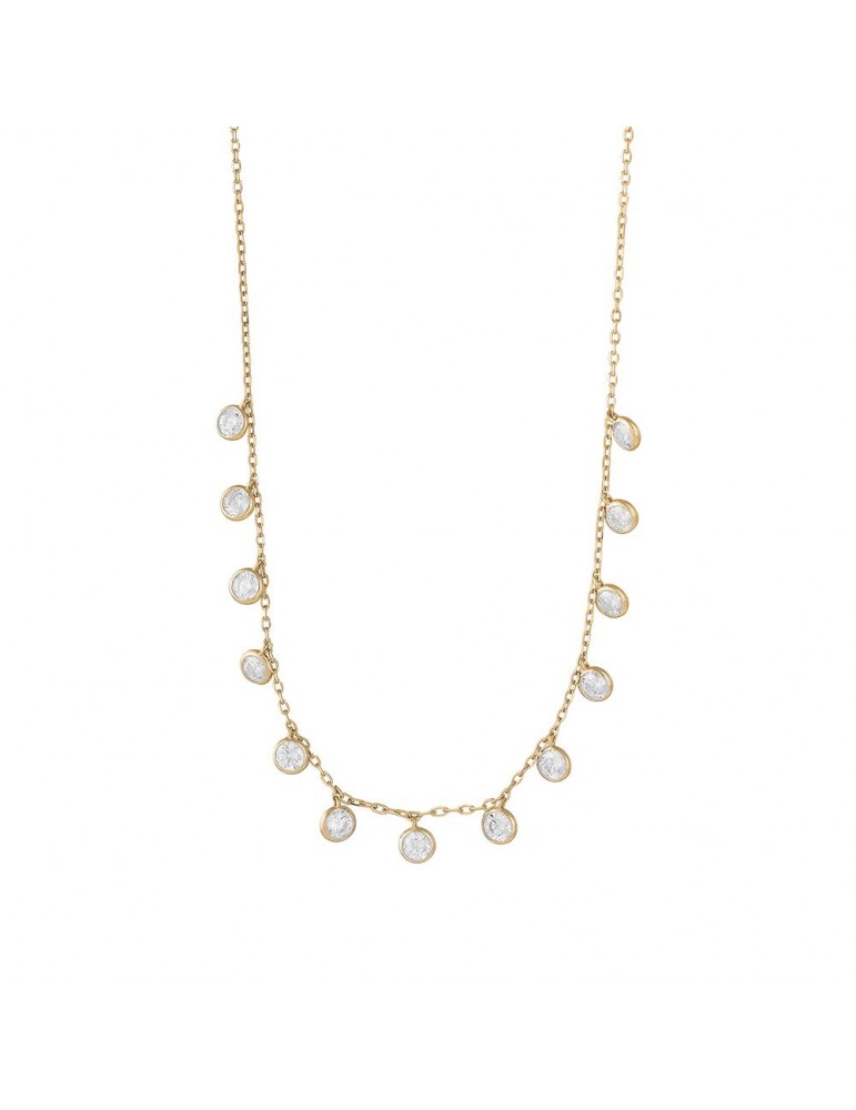 Feminint sølv forgyldt halskæde med hvide zirkonier. kæden måler 42+3cm.