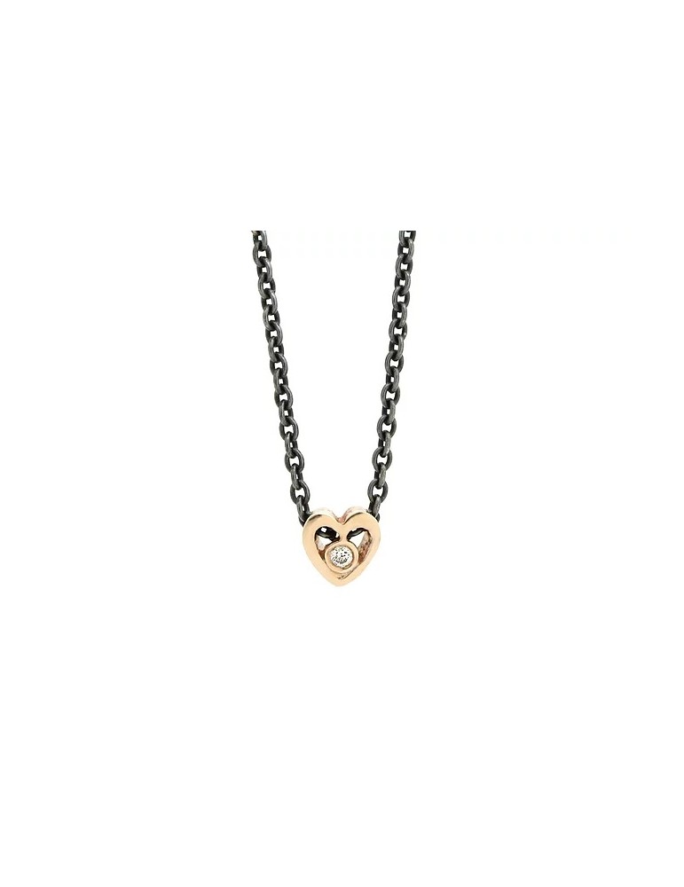 14 kt guld hjerte på oxideret sølv ankerkæde.