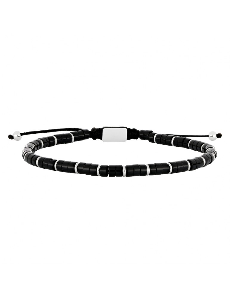 SON OF NOA armbånd i sort onyx med stål imellem.