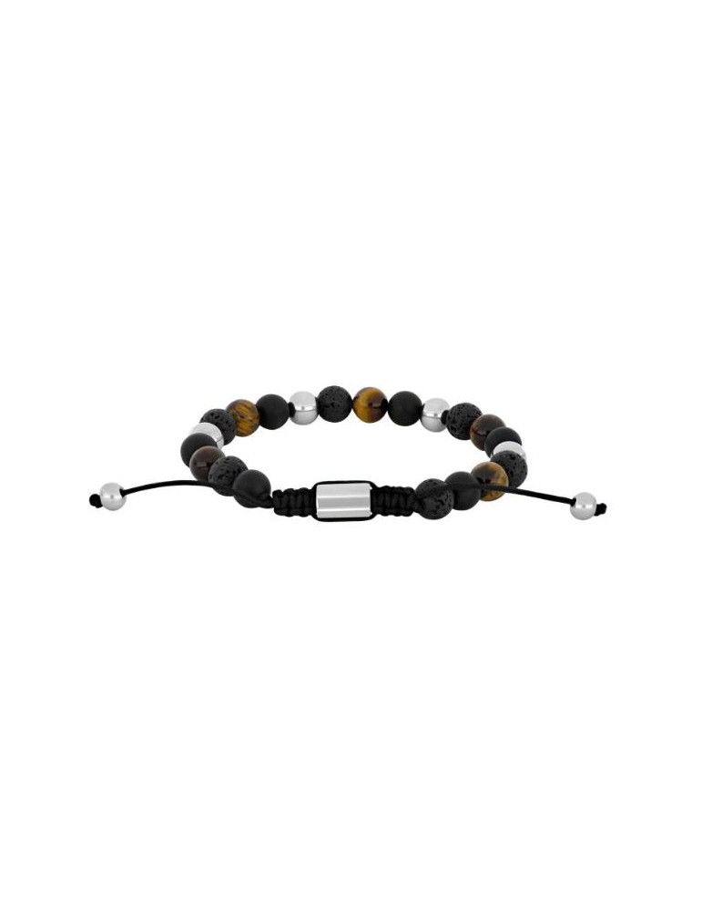 SON OF NOA armbånd med sorte agater, lava, tigerøje og stål