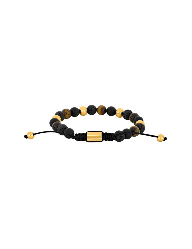 SON OF NOA armbånd med sorte agater, lava, tigerøje og forgyldt stål