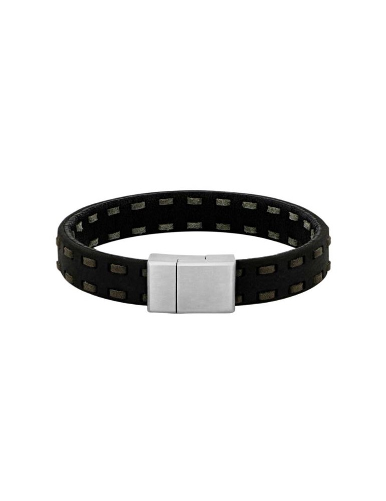 SON OF NOA armbånd med sort kalveskind med stållås.