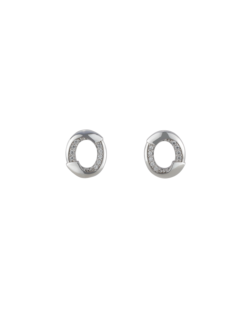 Jeweltime sølv ørestikker - oval cirkel med zirkonia.
