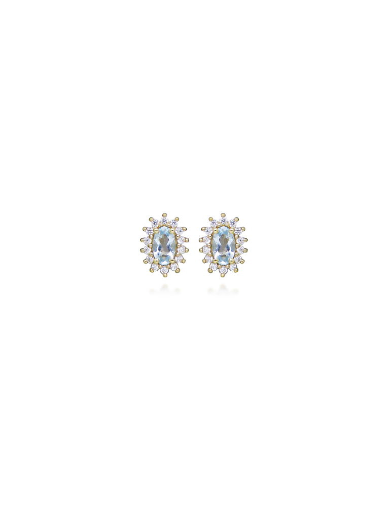 Jeweltime 8kt guld ørestikker - roset med blå topas og hvide zirkonia.