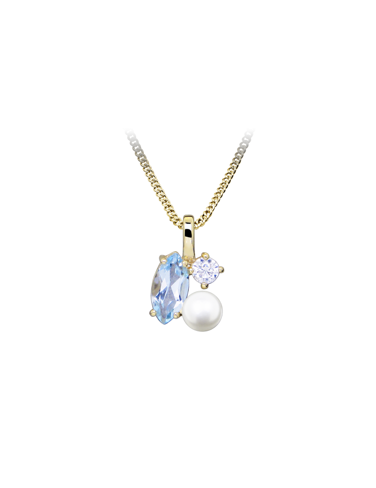 Jeweltime 8kt vedhæng i en fin forening af sky blå topas, perle og zirkonia.