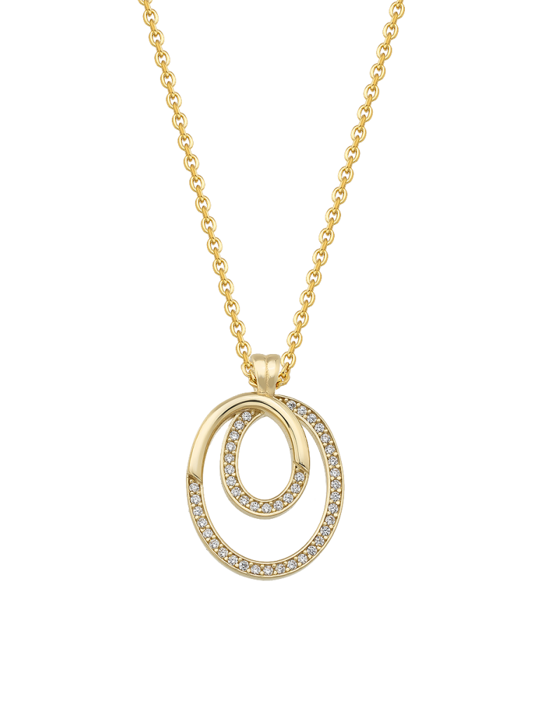 Smukt 8kt guld Jeweltime vedhæng med 2 ovale cirkler pyntet med zirkonia.