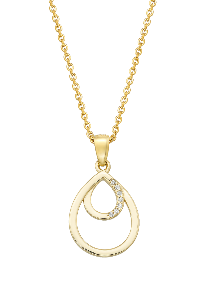 Smukt 8kt guld Jeweltime vedhæng - dobbelt dråbe med et strejf af zirkonia på den lille dråbe.