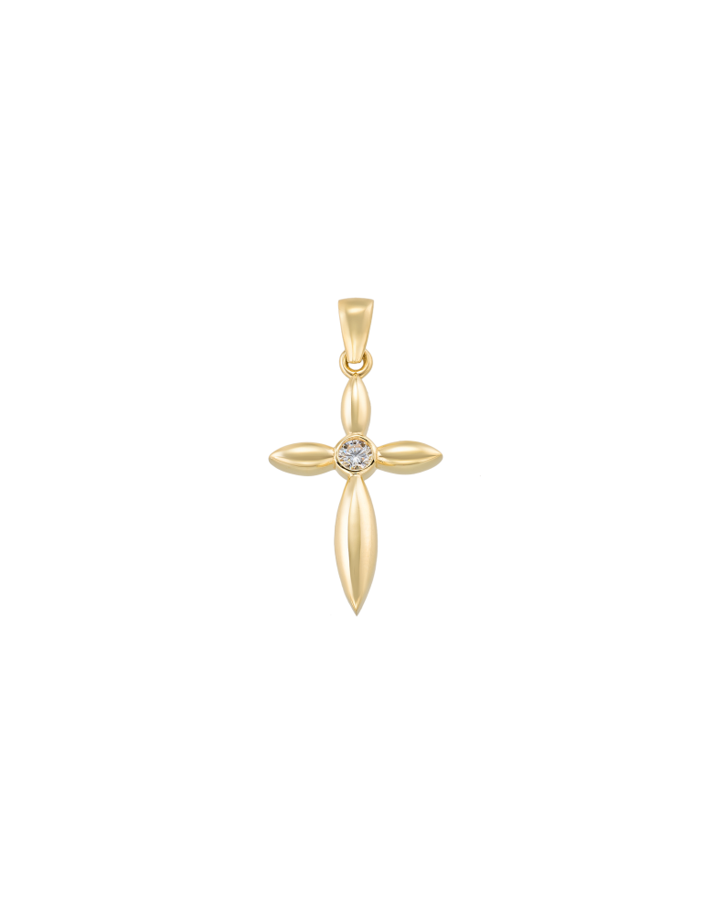 Smukt 8kt guld Jeweltime vedhæng - kors pyntet zirkonia i midten.