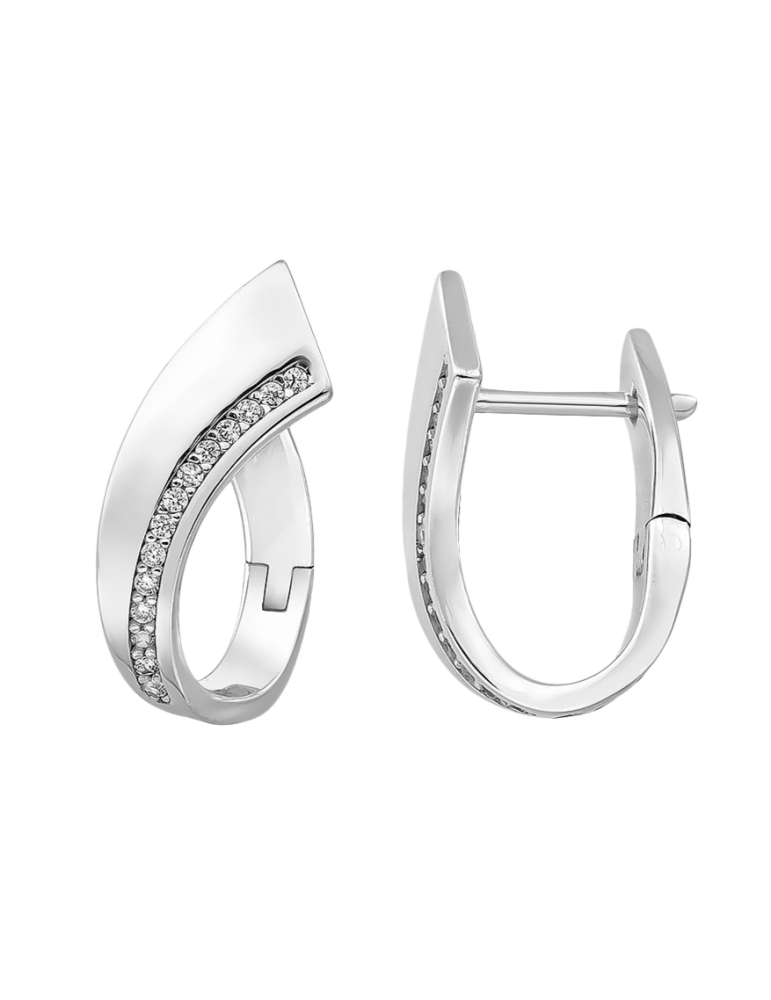 Super flot Jeweltime sølv rhodineret creol med zirkonia som svinger bag om øreflippen
