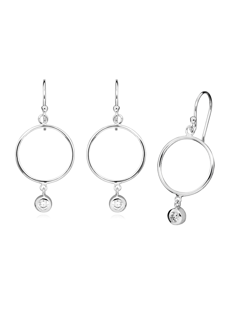 Jeweltime sølv ørehænger - fin cirkel med vedhæng med zirkonia.