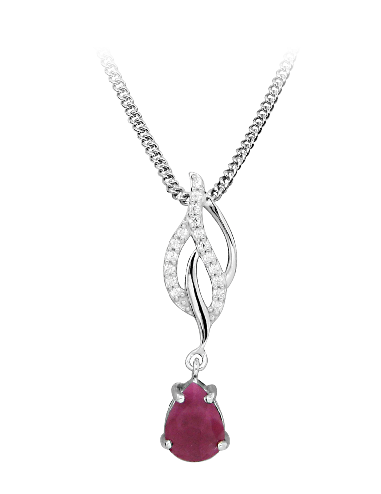 Jeweltime sølv rhodineret halskæde. Vedhænget er fint prydet med zirkonia samt en dråbe af rubin.