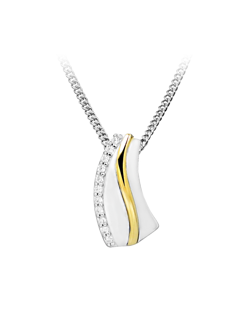 Jeweltime sølv rhodineret halskæde. Vedhænget er fint pyntet med en linje af zirkonia samt guldstribe.