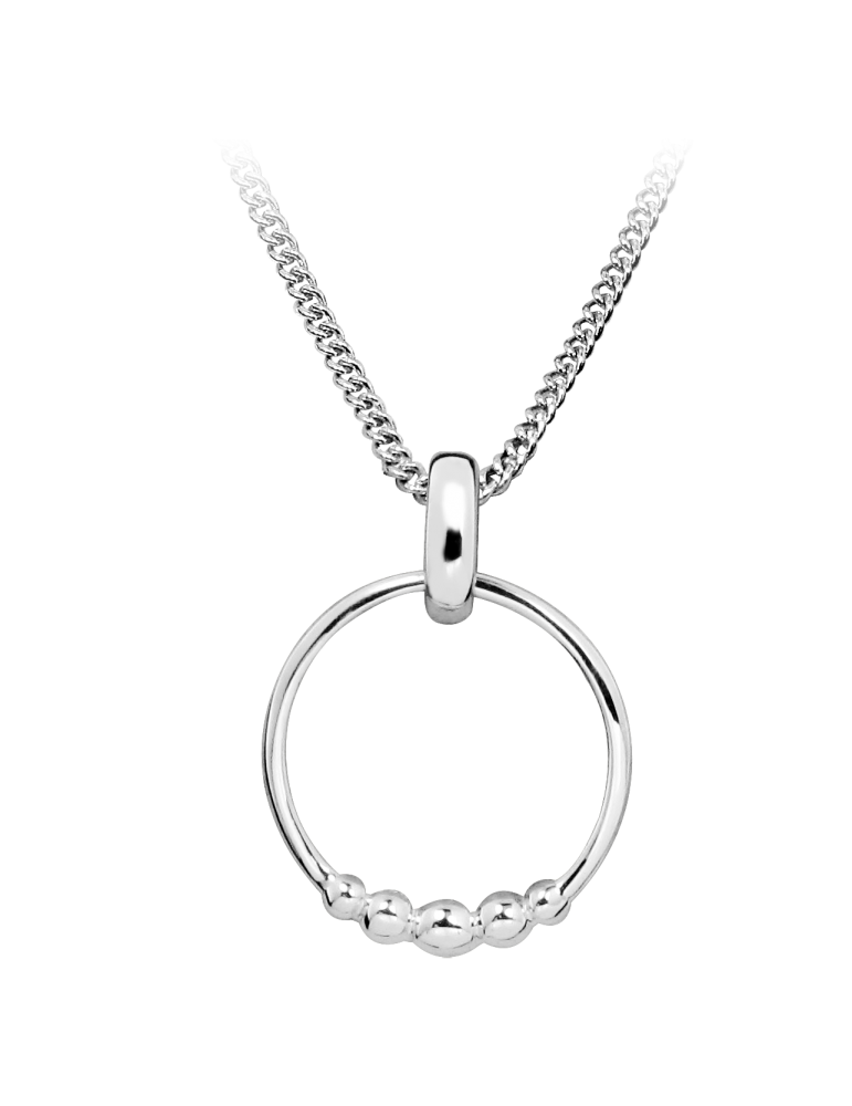 Jeweltime sølv rhodineret halskæde med vedhæng - cirkel med små kugler i bunden