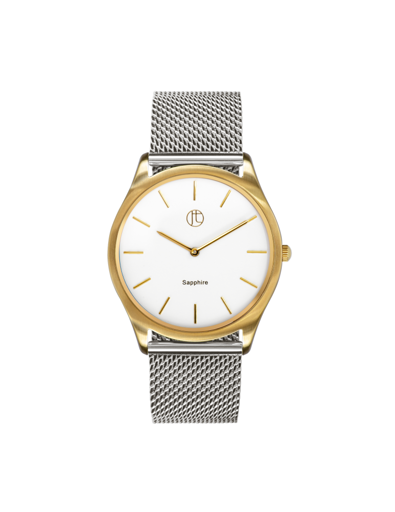 Jeweltime herreur - stilrent ur med double urkasse og meshlænke i stål, lys skive med double-farvet viser og index.