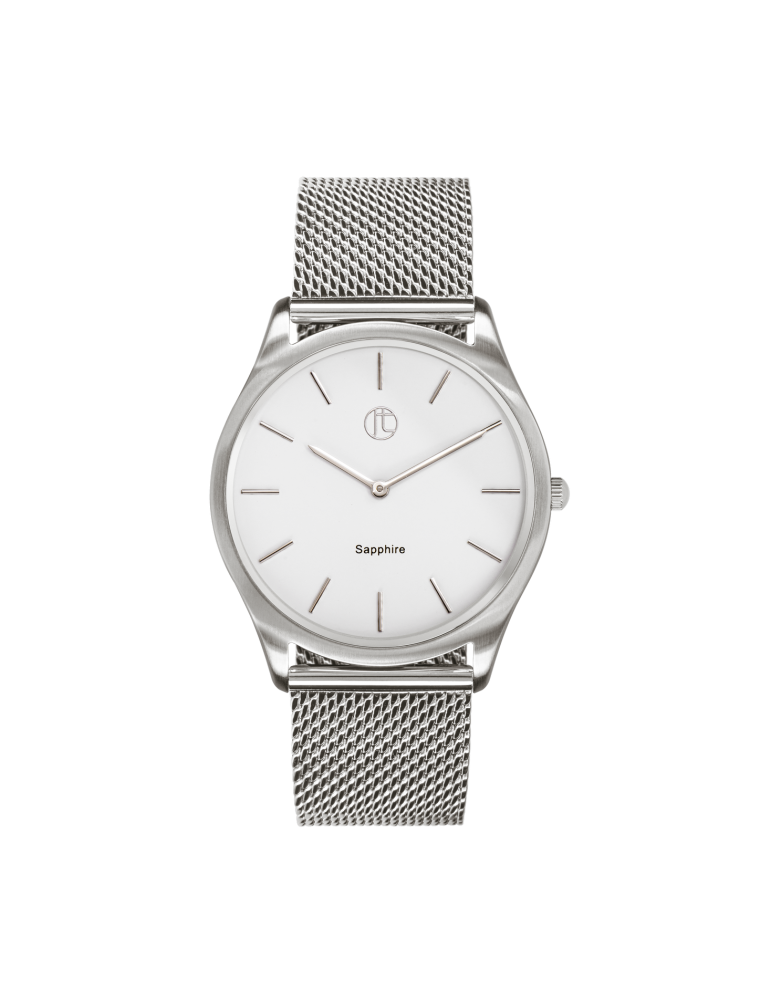 Jeweltime herreur - stilrent ur med stål urkasse og meshlænke i stål, hvid skive med sølv-farvet viser og index.