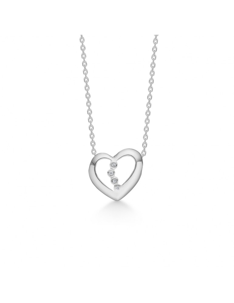 Hjerte i 14 kt. hvidguld med 0,017ct. diamanter. Sølv kæde medfølger.
