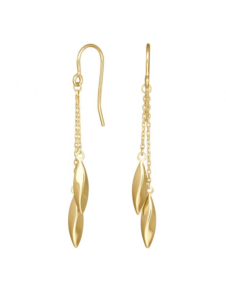 8kt guld ørebøjle - med 2 kæder og afsluttet med blade
