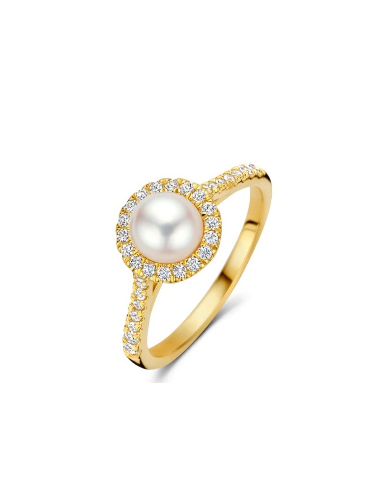 Super smuk og funklende Spirit Icons Malibu Pearl ring i forgyldt sølv med ferskvandsperle og zirkonia.