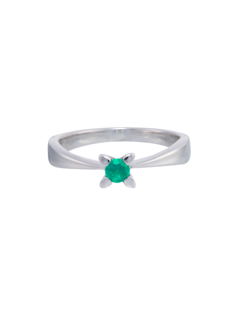 Klassik solitaire ring i 14 kt. hvidguld med en smaragd på Ø: 3,5mm
