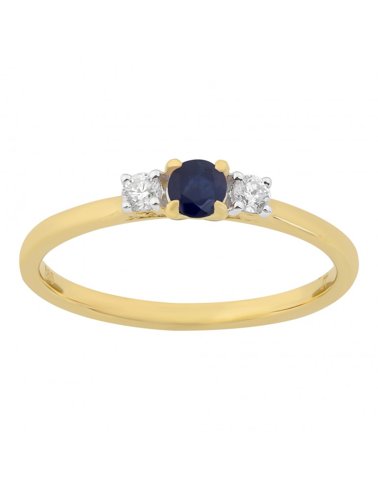 Smuk 14kt guldring med 1 safir og 2 brillanter.