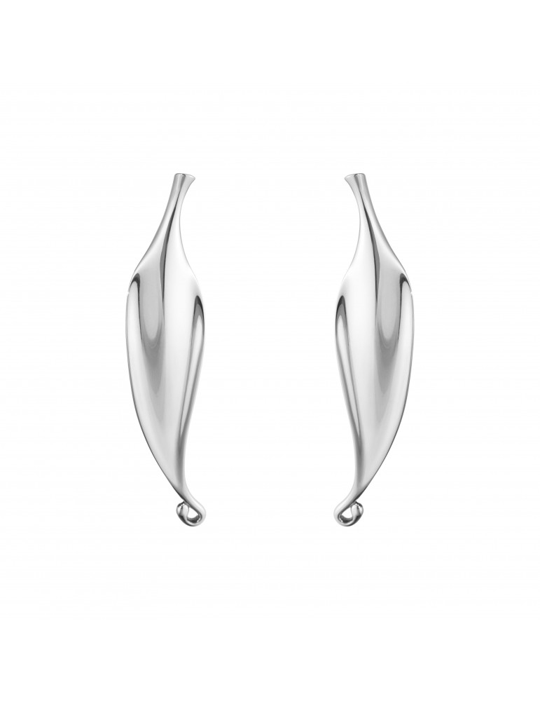 De to organiske former i sterlingsølv er sat sammen i et flot samspil og danner disse skulpturelle og moderne hængslede hoop-øreringe. Smykkerne er designet af Jacqueline Rabun og kombinerer et dristigt look med Georg Jensens skulpturelle designsprog.