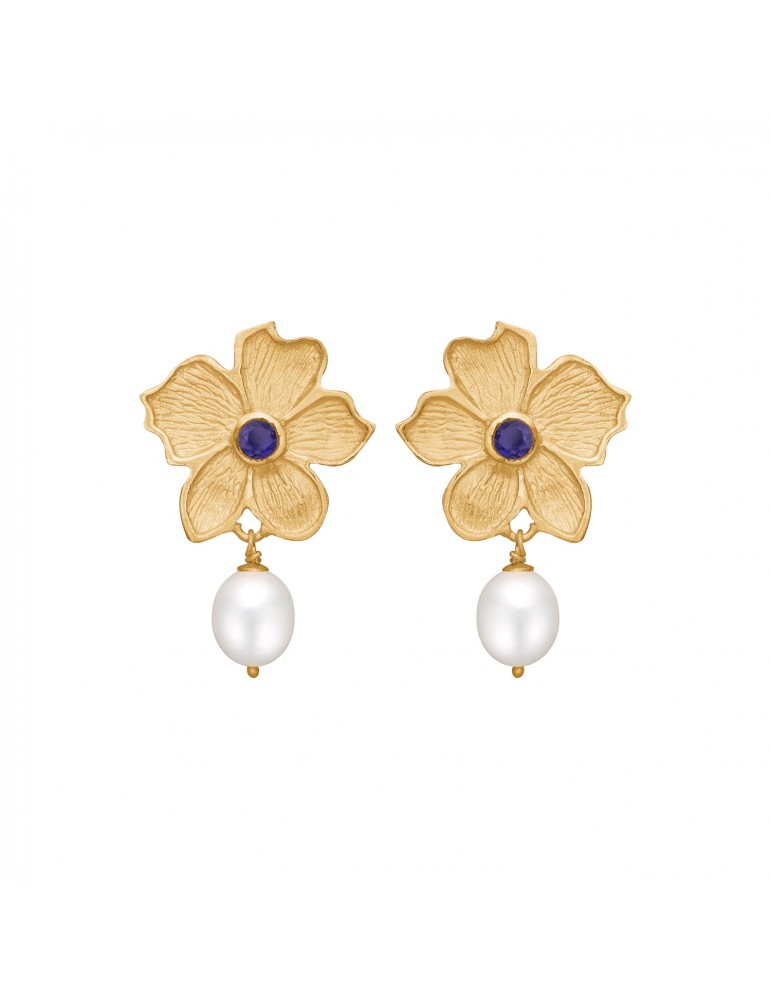 By Birdie - Super flotte øreringe i forgyldt sølv, blomst- Poppy med perle og Lolit. Lidt anderledes stil end hvad man normalt ser fra Birdie.
