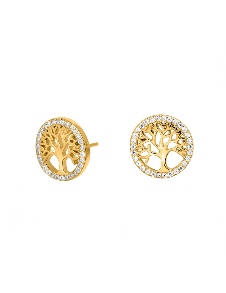 Super fine ørestikker i forgyldt sølv med livets træ omkranset af zirkonia.
