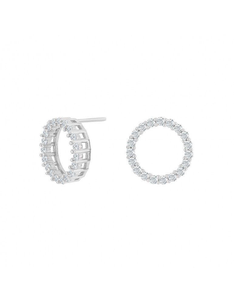 Flotte sølv rhodineret cirkel ørestikker med zirkonia.