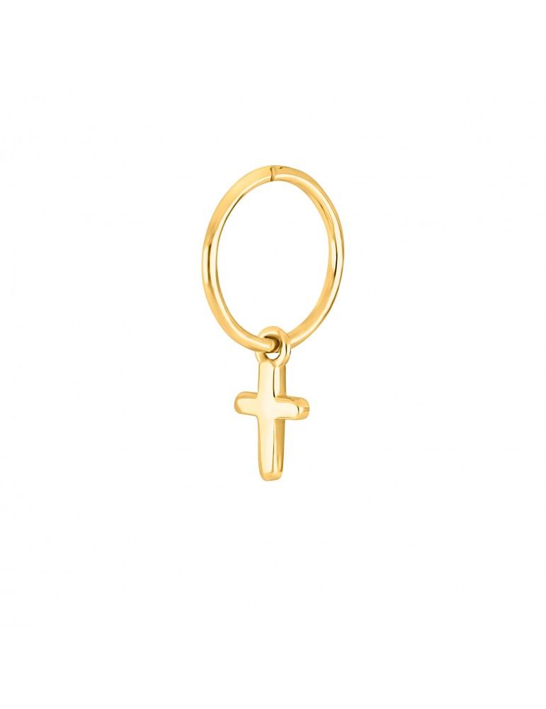 Smart ørering med kors i forgyldt stål. Bemærk at denne ørestik sælges enkeltvis.