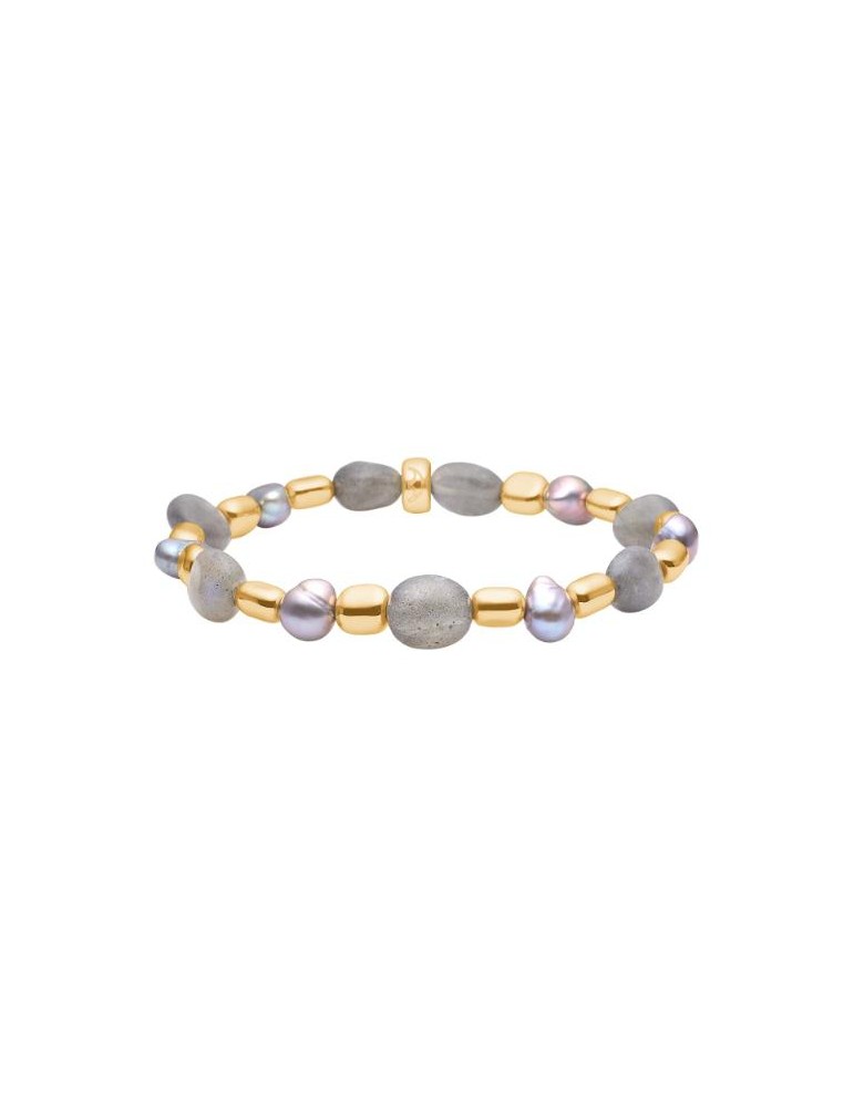 Super fint Heizendorff sten armbånd m. grå ferskvandsperle, forgyldt hematit og labadorit
