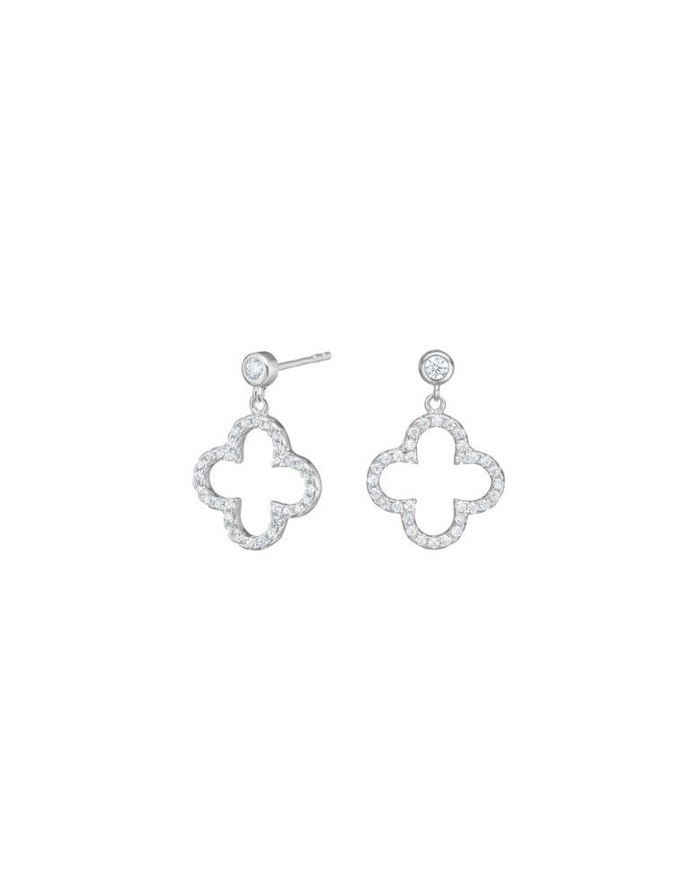 Super fine ørehængere i rhodineret sølv firkløver m. zirkonia