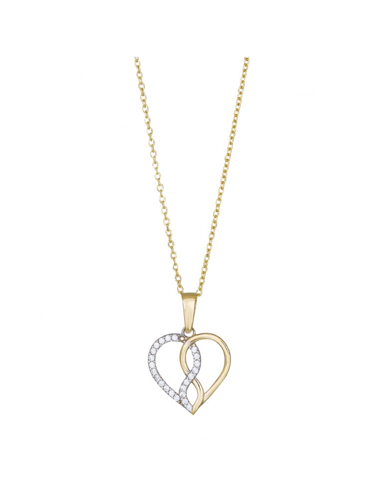 Sødt 8kt guld vedhæng - hjerte og uendelighedstegn m. zirkonia og forgyldt kæde